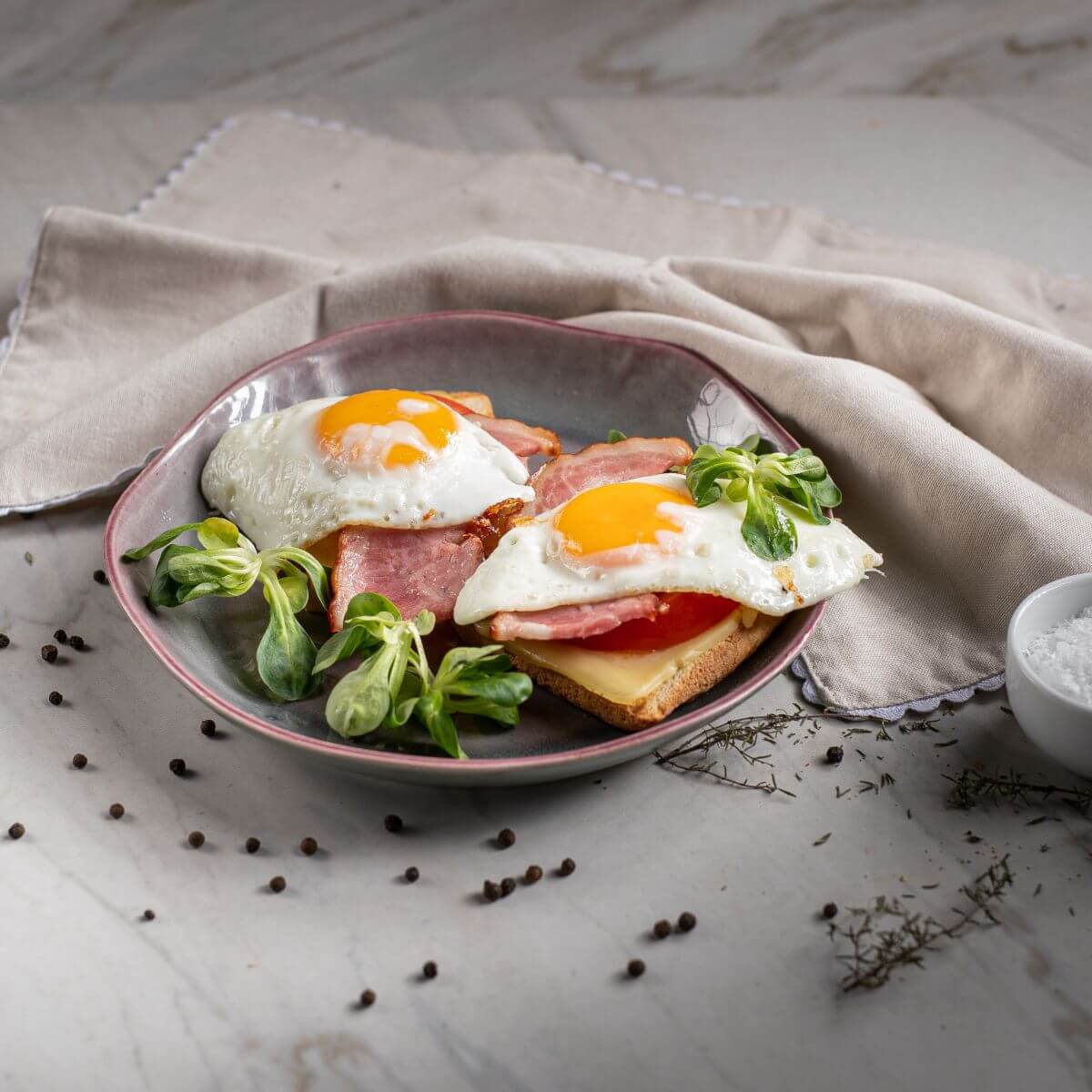 (salata, 2 oua ochiuri, paine toast, bacon, mozzarela, rosii) 200G