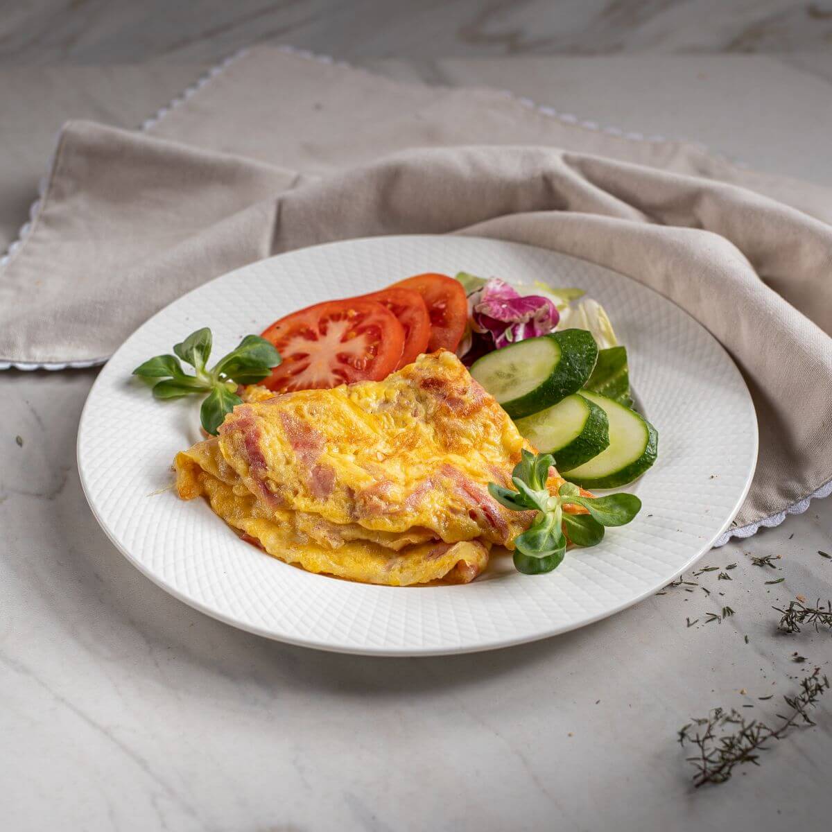 (ou, mozzarella, sunca, rosii, castraveti, salata, paine prajita) 160G